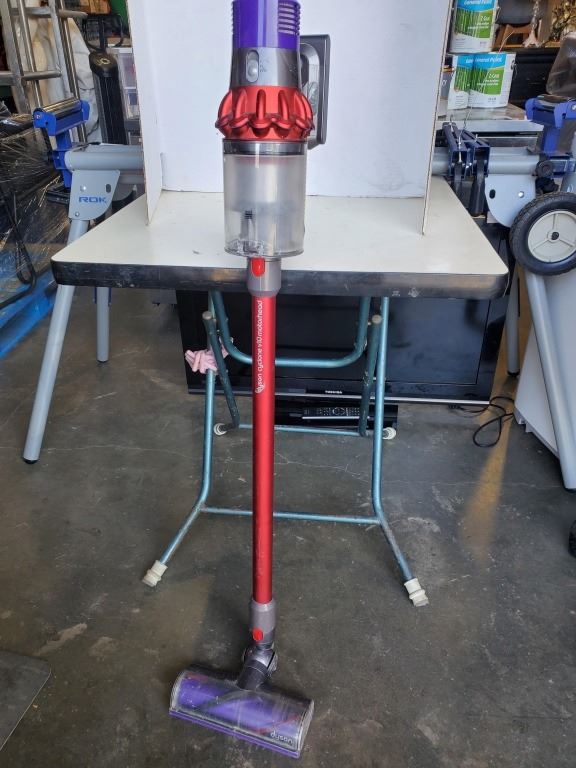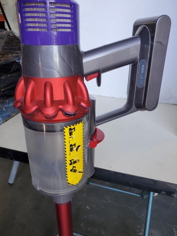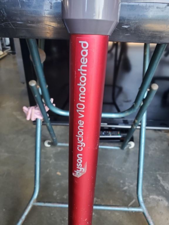 DYSON V10 MOTORHEAD STICK VACUUM, NO CHARGER, WORKS WELL, SHOWS SIGNS OF A DROP, (SEE PICTURES) REPAIRED WITH STRONG ADHESIVE TAPE, WORKS WELL AND GOOD SUCTION