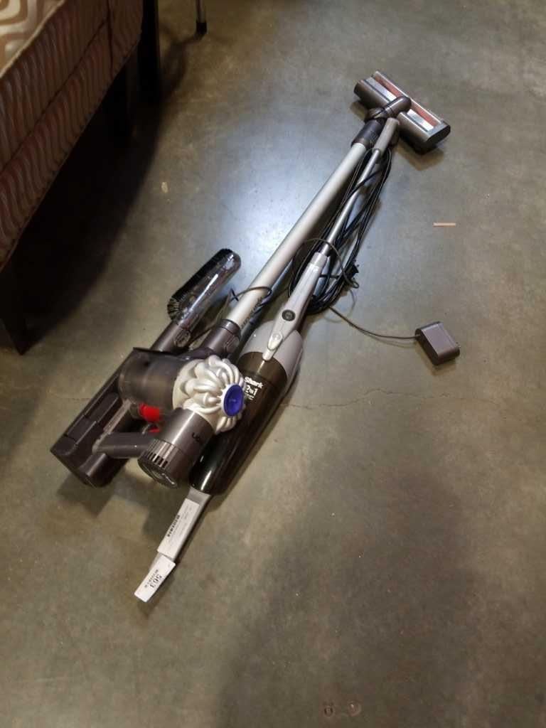 Dyson V6 vacuum with charging dock and Shark two-in-one vacuum