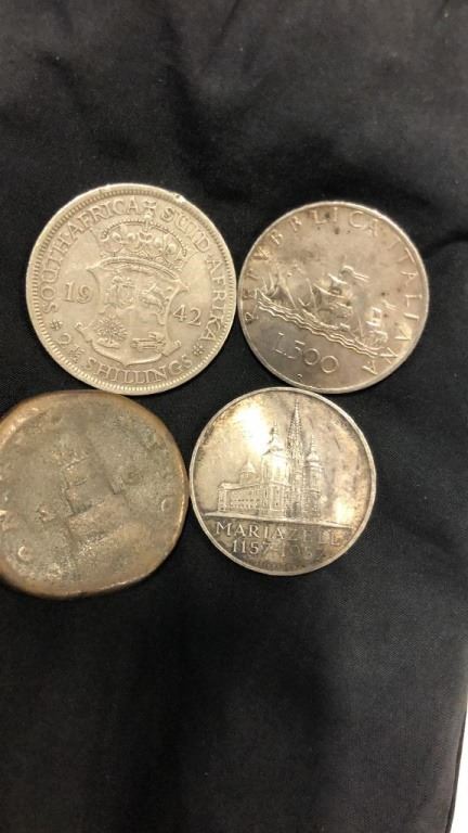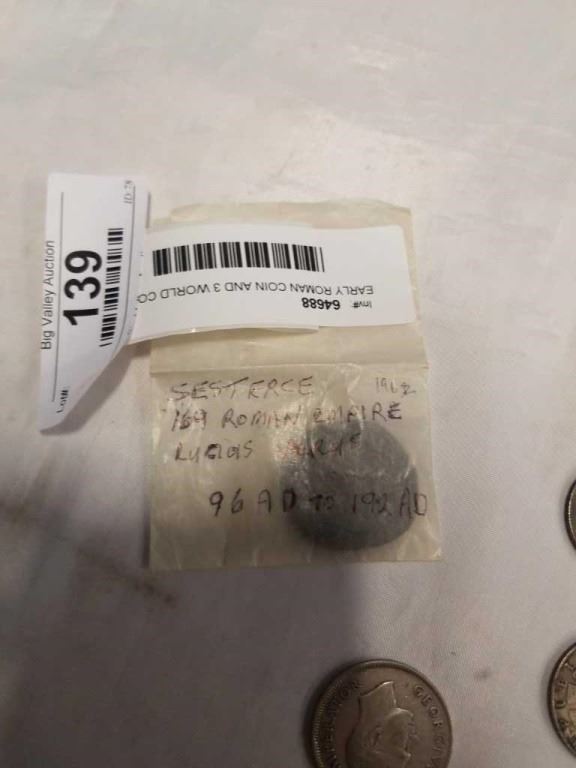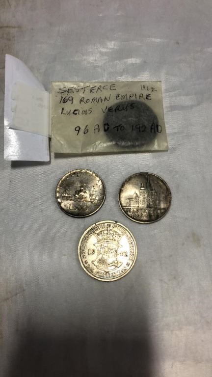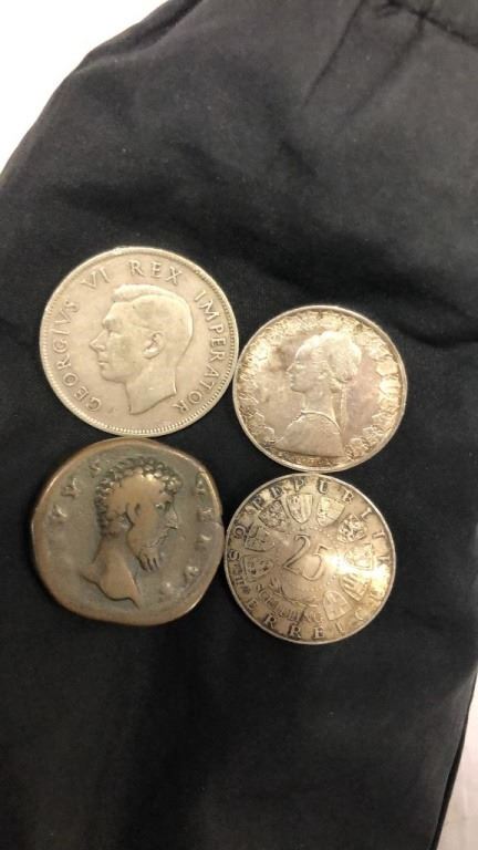 EARLY ROMAN COIN AND 3 WORLD COINS - SOME SILVER