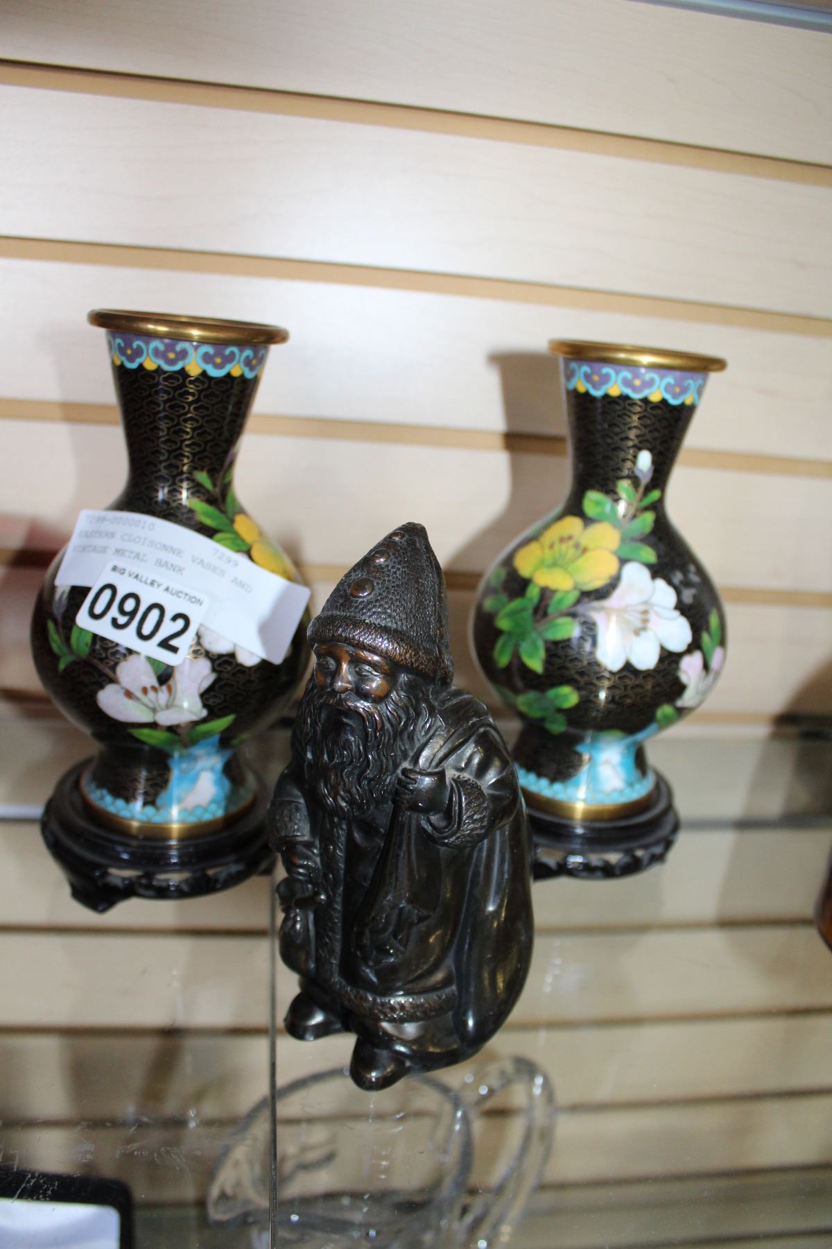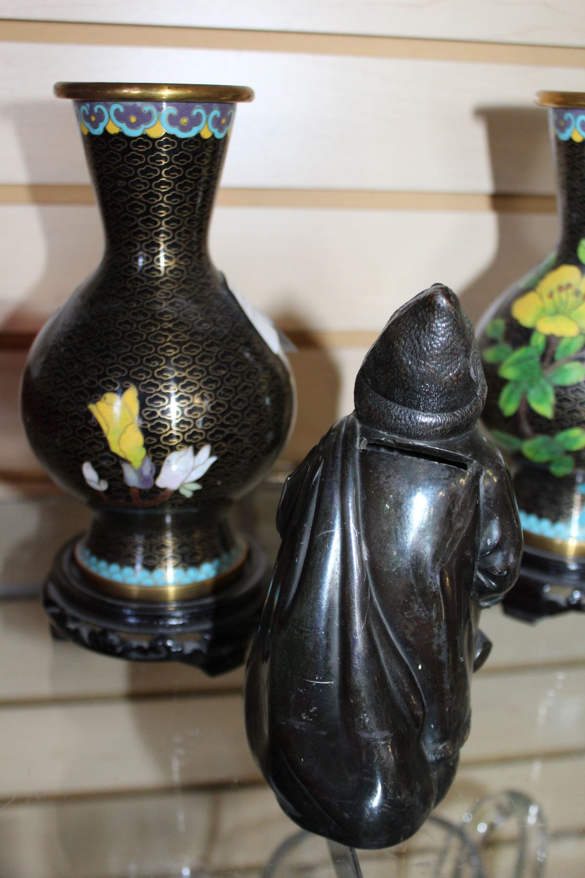 EASTERN CLOISONNE VASES AND VINTAGE METAL BANK