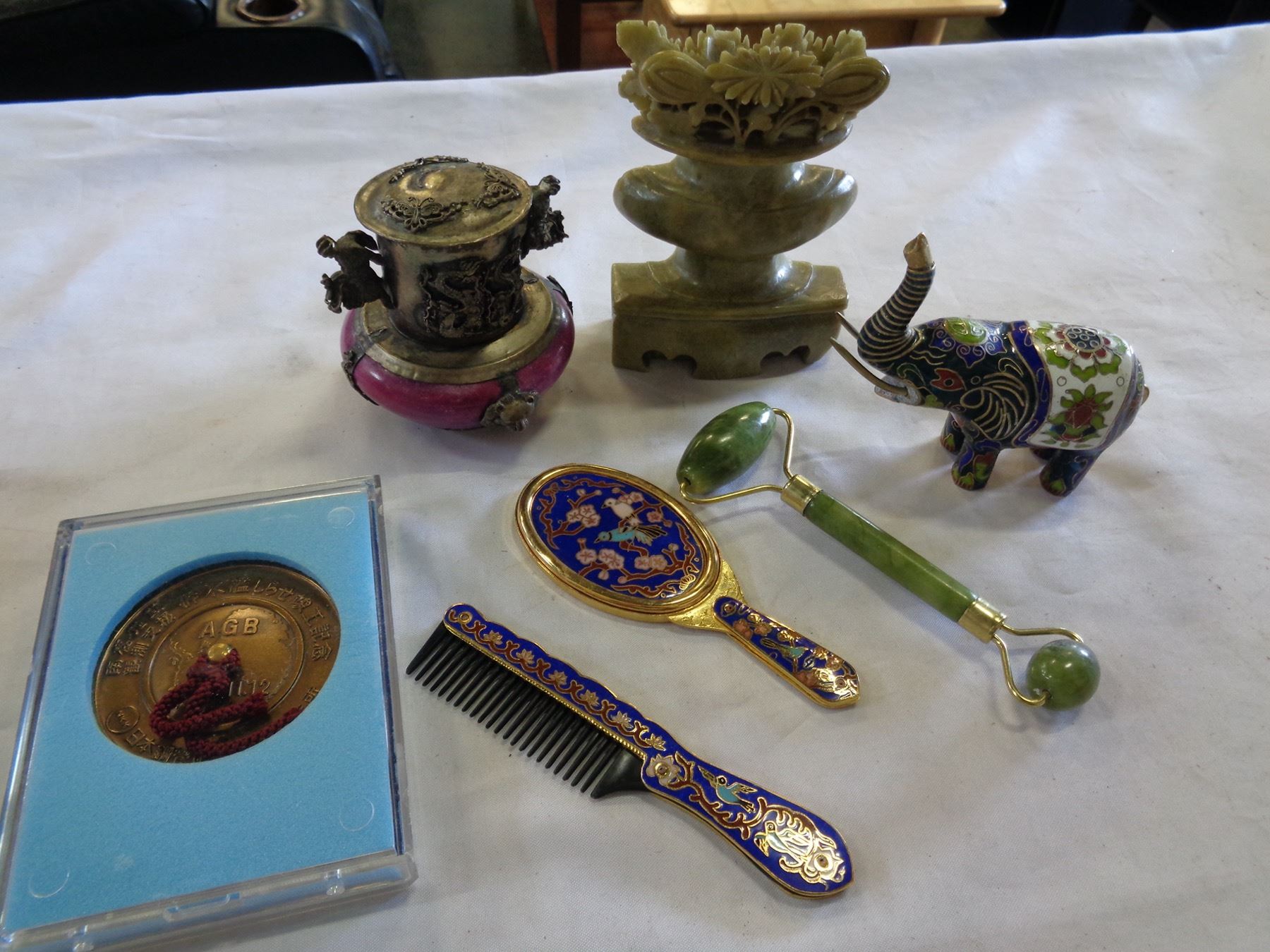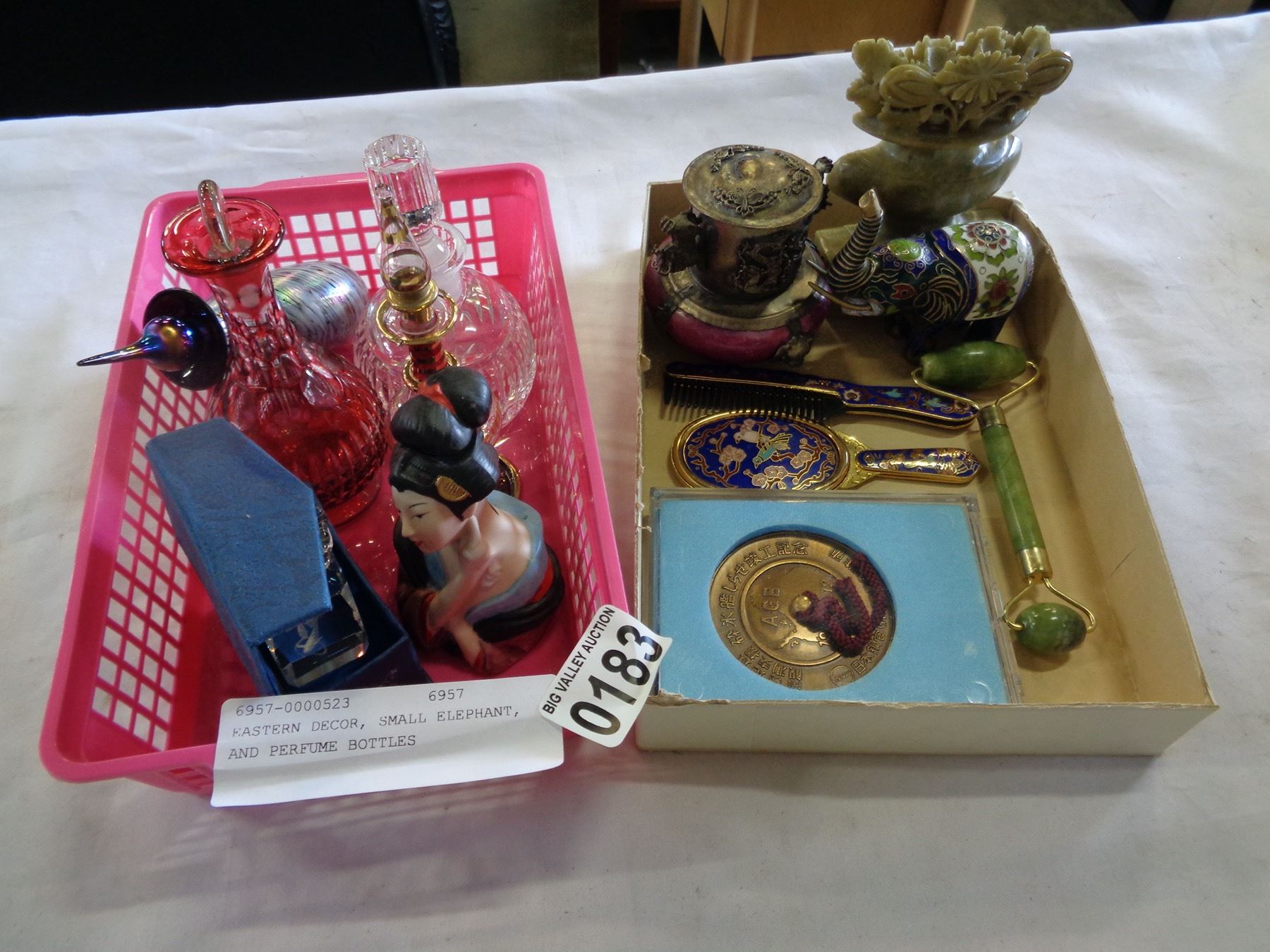 EASTERN DECOR, SMALL ELEPHANT, AND PERFUME BOTTLES
