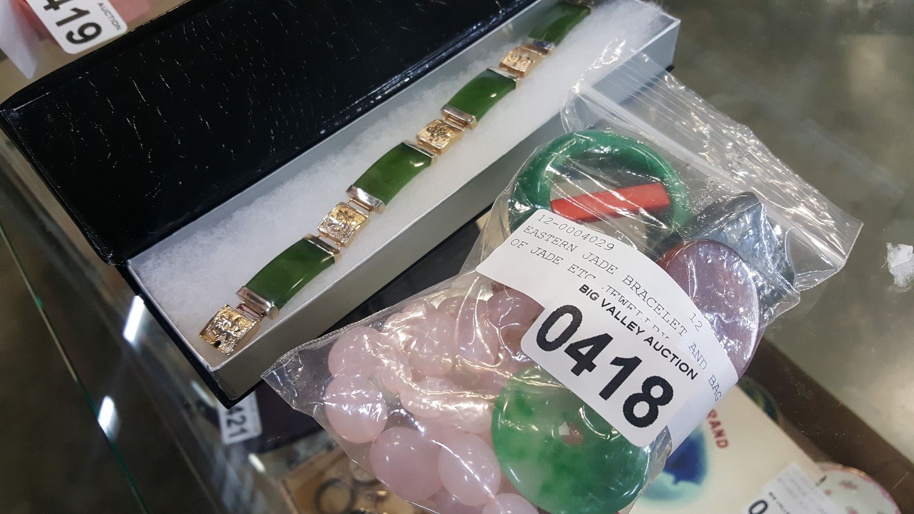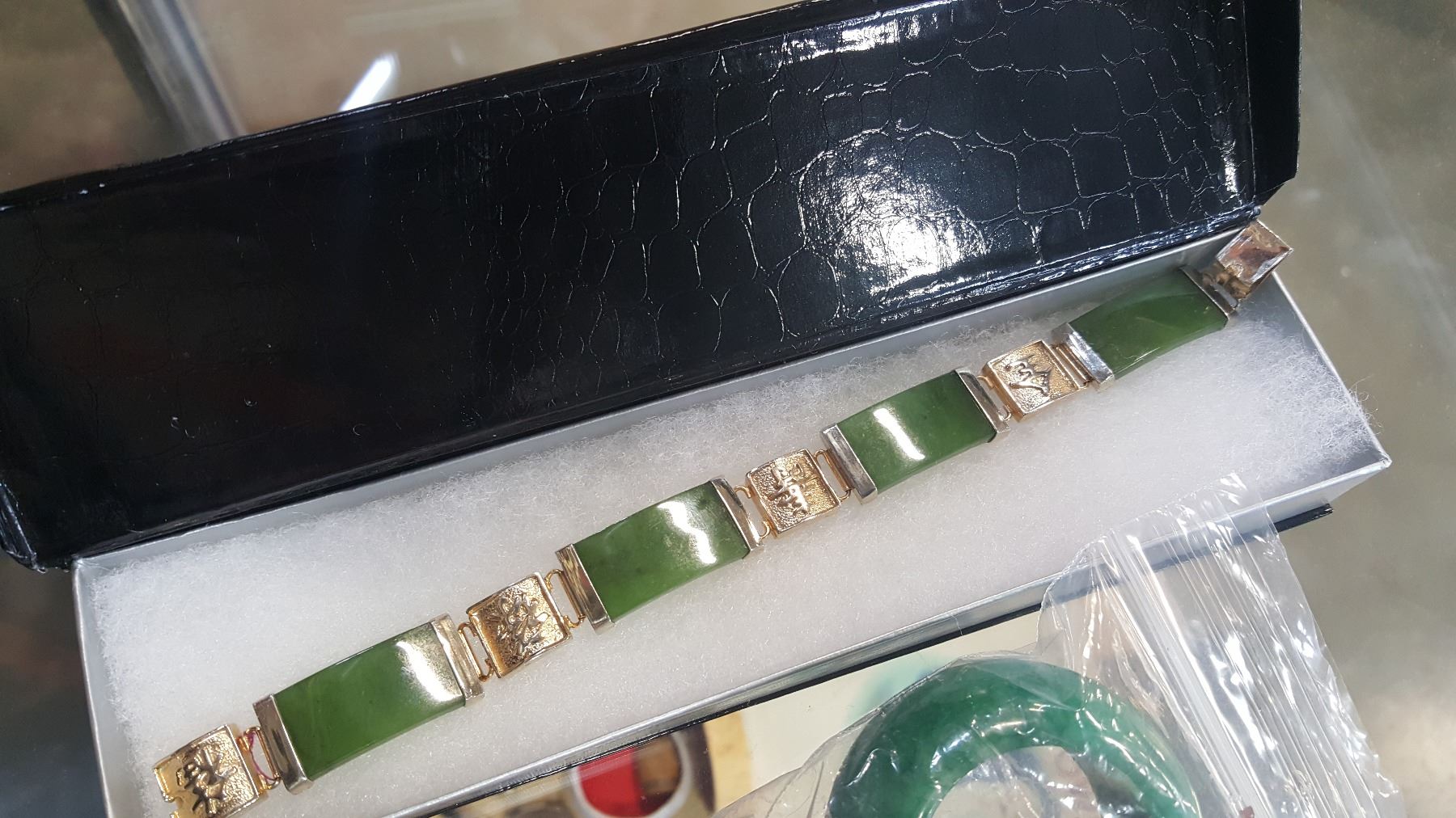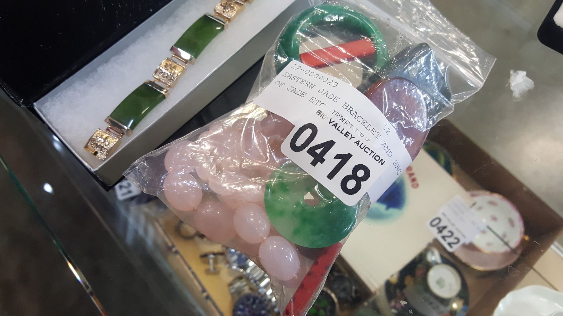 EASTERN JADE BRACELET AND BAG OF JADE ETC JEWELLRY