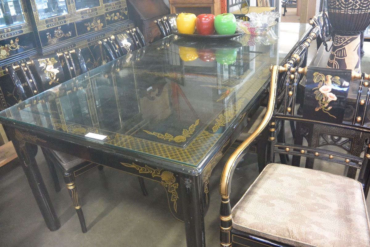 EASTERN LACQUERED AND GILT DINING TABLE WITH 2 LEAFS AND
