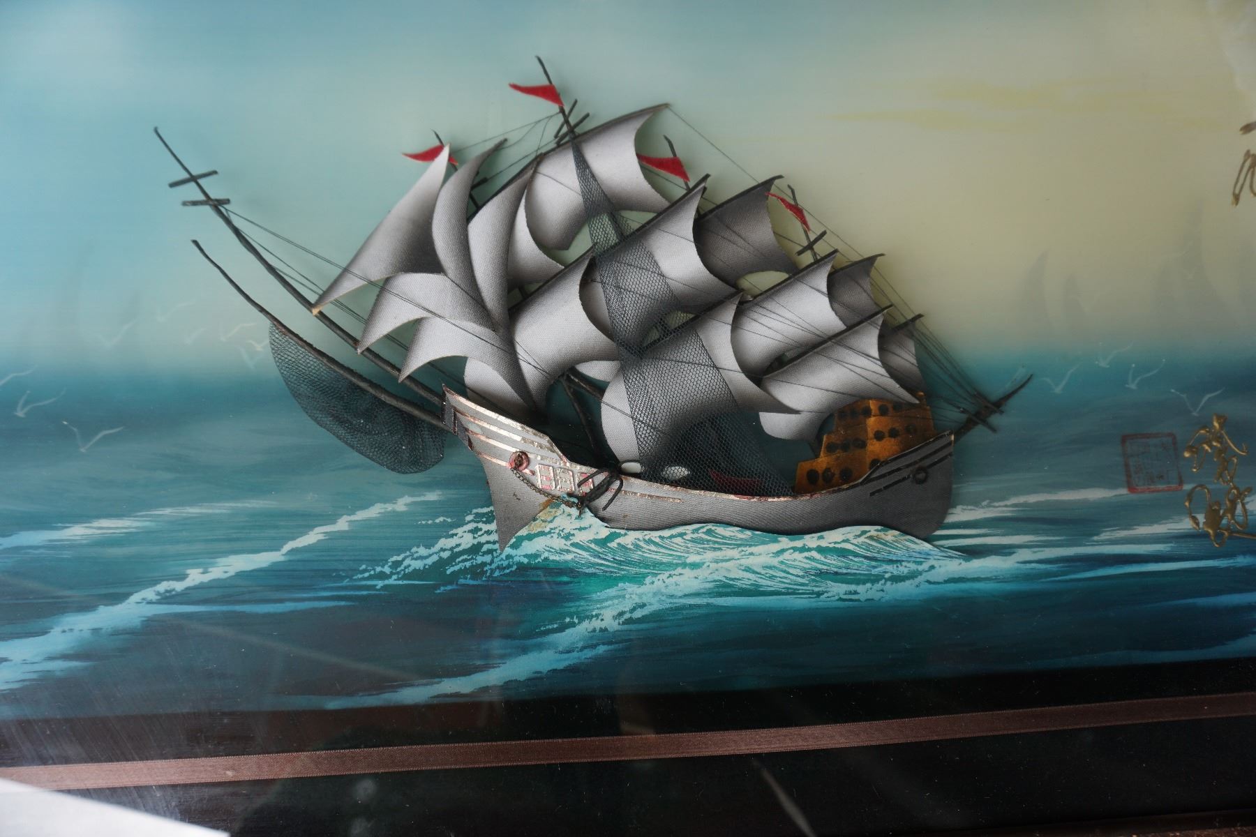 EASTERN TALL SHIP 3D SHADOW BOX ART SIGNED - CHINESE