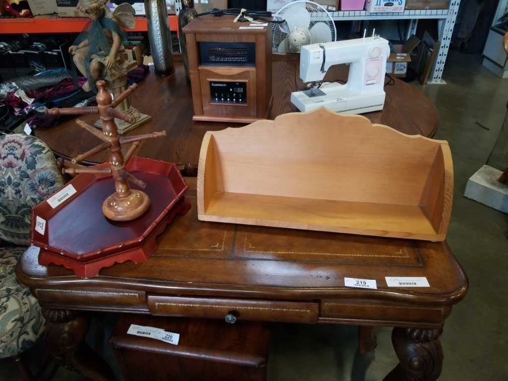 EASTERN TRAY, WOOD JEWELRY TRYY AND PINE BOOK SHELF