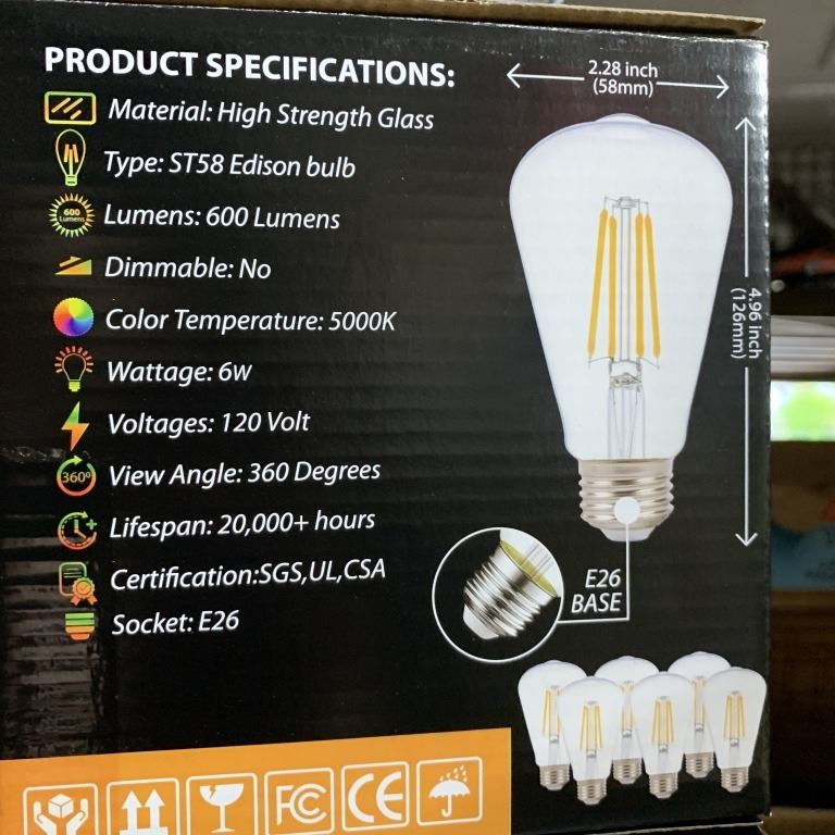 EIGHT BOXES OF BERELLI ST58 6W 5000K E26 STANDARD SOCKET LIGHT BULBS SIX PER BOX RETAIL $200