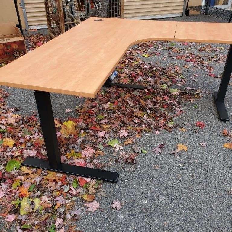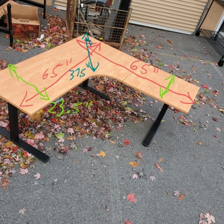 ELECTRIC ADJUSTABLE HEIGHT CORNER DESK WITH 4 PRESETS WORKING 65" X 23.5" AND 37.5" CORNER TO CORNER