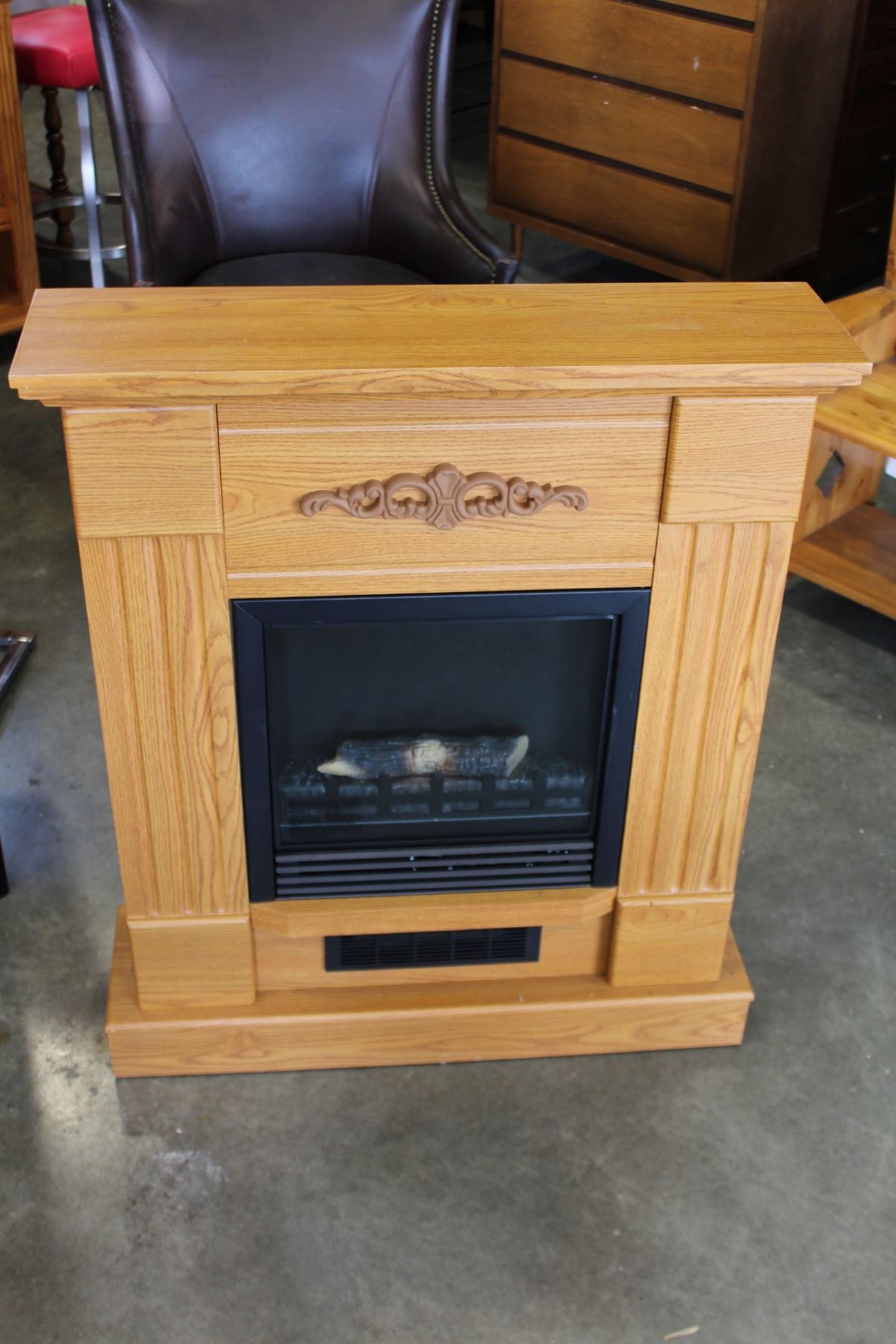 ELECTRIC FIREPLACE IN OAK MANTLE
