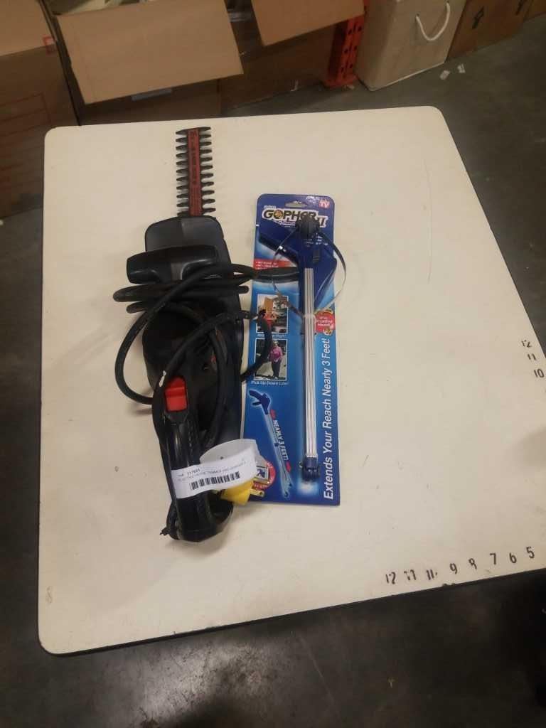 ELECTRIC HEDGE TRIMMER AND GOPHER 2 PICKUP TOOL