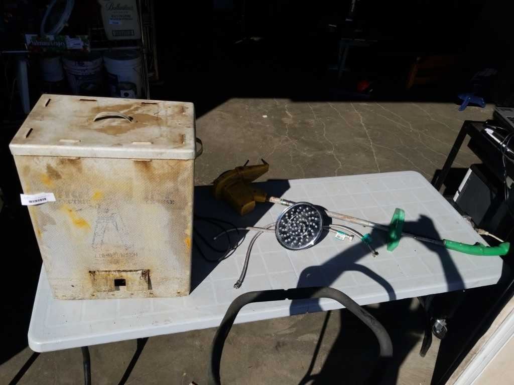 ELECTRIC LITTLE CHIEF SMOKER, SHOWER HEAD AND ELECTRIC WEEDEATER