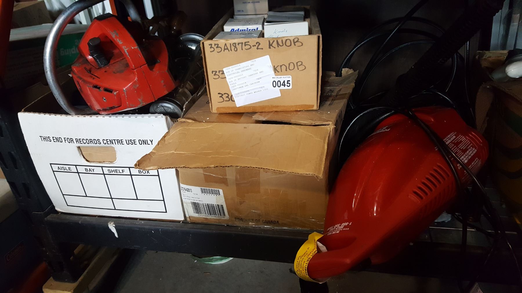 ELECTRIC POWER WASHER, CRAFTSMAN GAS CHAINSAW, BOX OF TRANSISTORS AND ELECTRICAL HARDWARE, BATTERY C