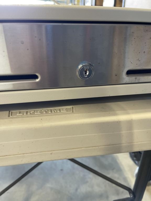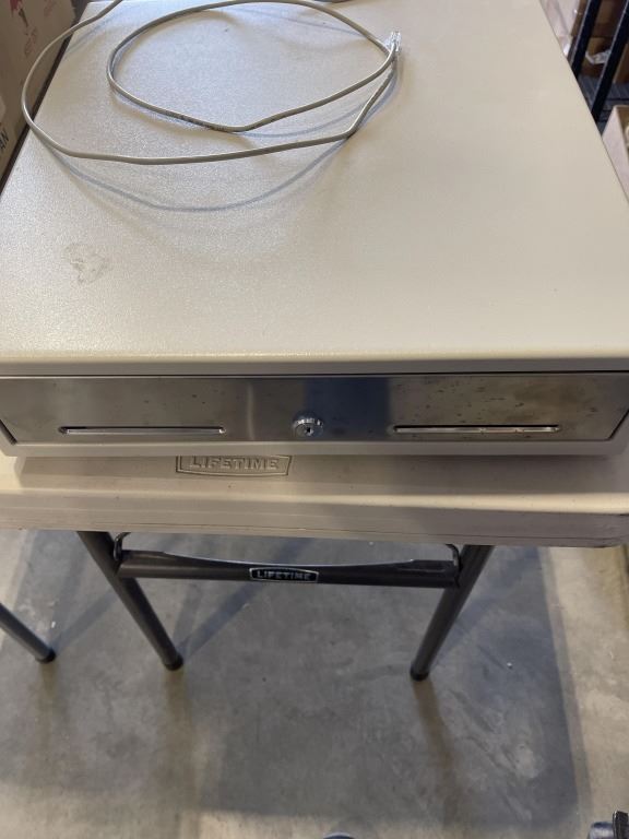ELECTRONIC CASH DOOR MODEL CF-MEDIA-WHITE AND BOX OF STRAPPING