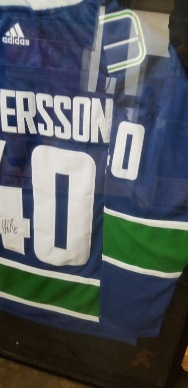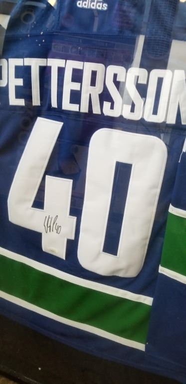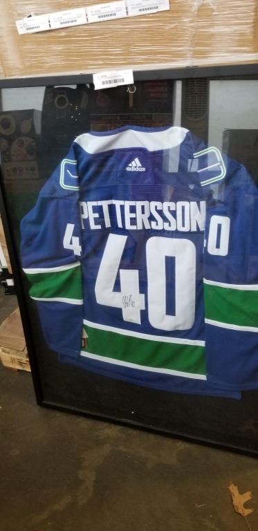 ELIAS PETTERSON AUTOGRAPHED VANCOUVER CANUCKS JERSEY WITH COA IN SHADOW BOX DISPLAY CASE