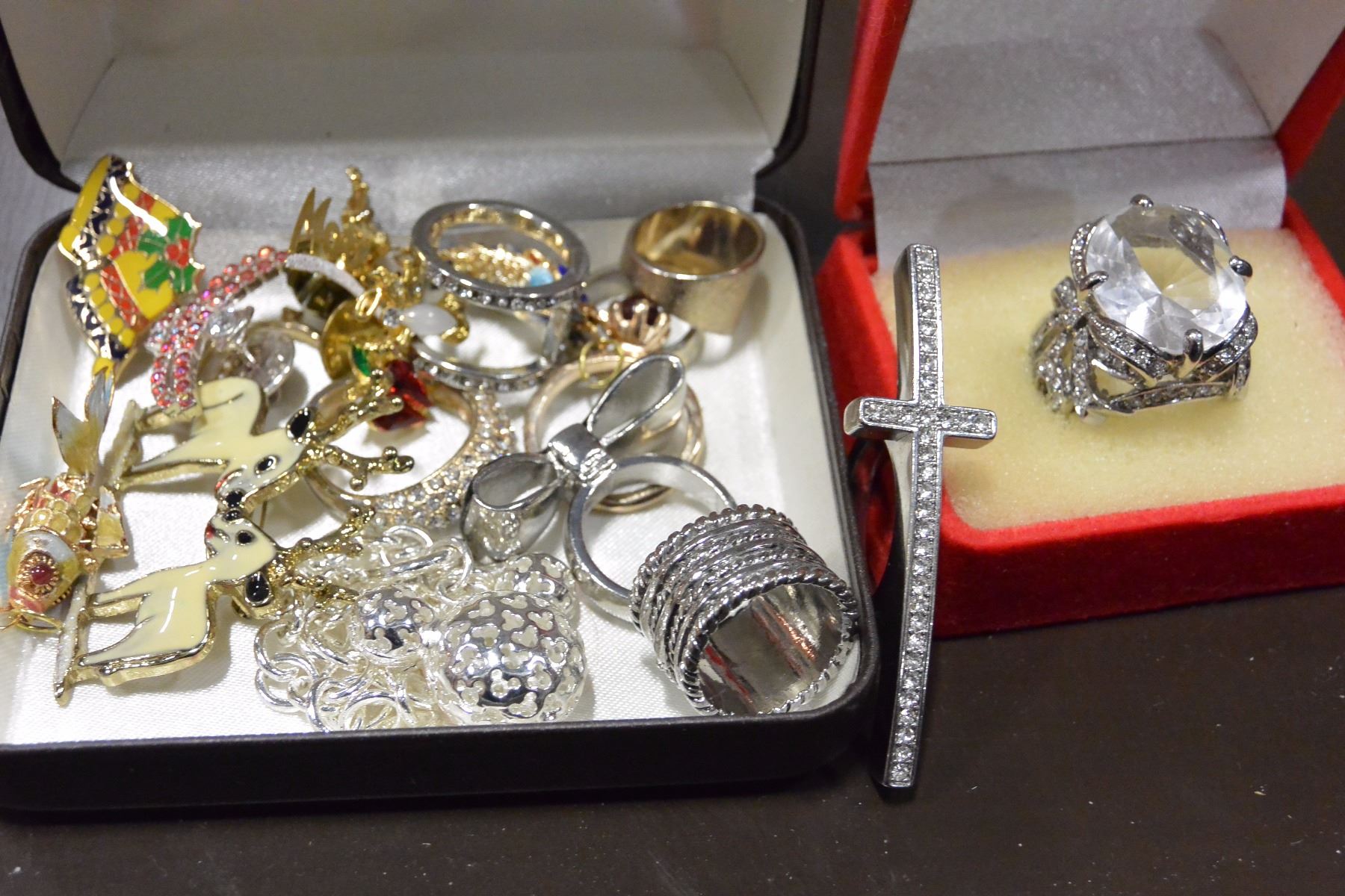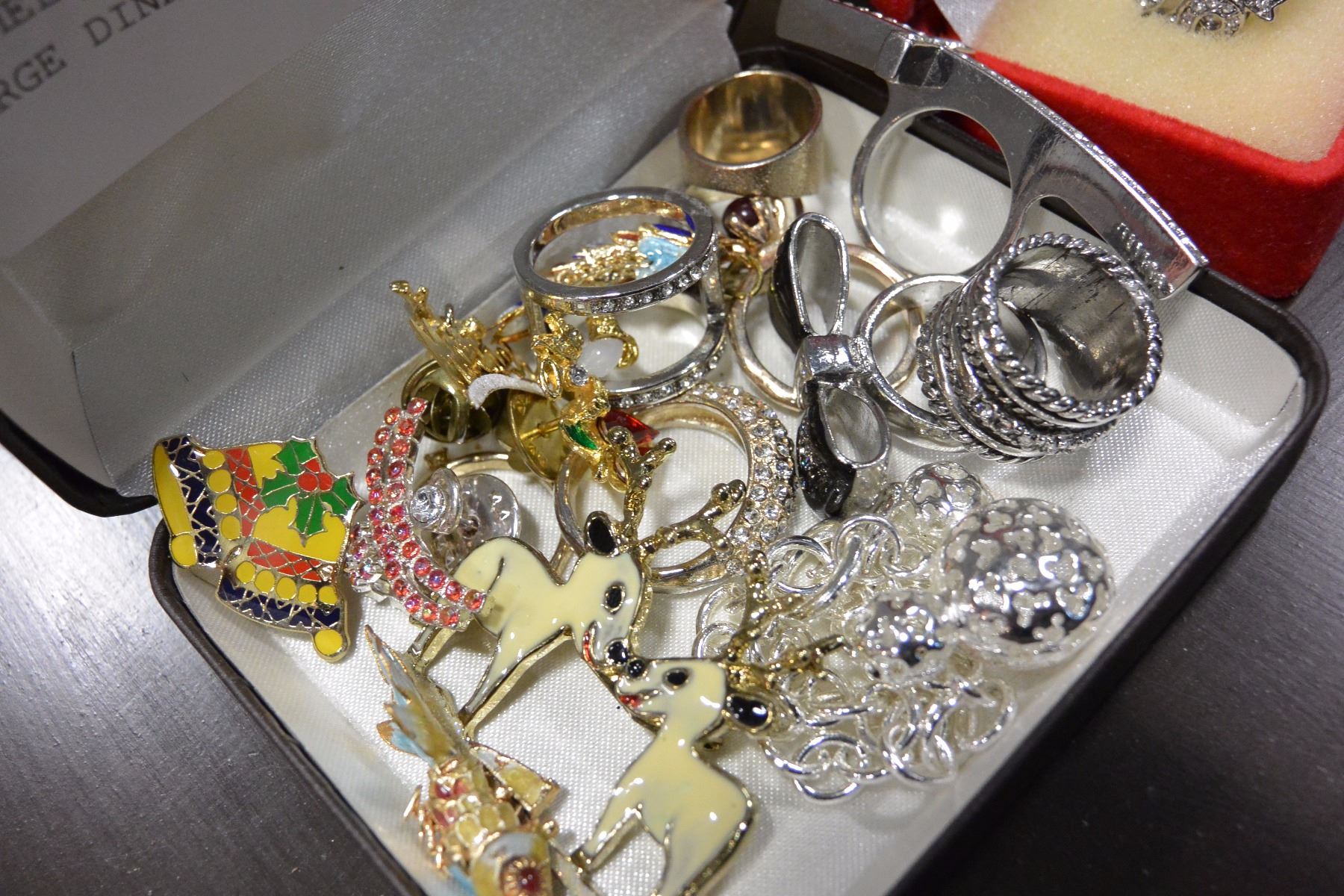 ENAMEL PINS NOVELTY RINGS AND LARGE DINNER RING