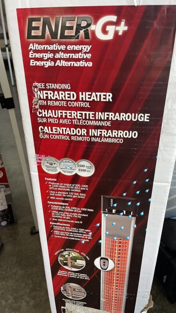 ENER-G+ FREE STANDING INFRARED HEATER WITH REMOTE TESTED AND WORKING - RETAIL $324