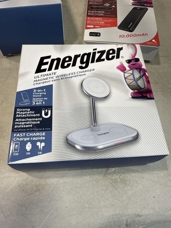 ENERGIZER 10K POWER BANK WITH LCD SCREEN, 3 IN 1 WIRELESS CHARGING STAND AND WIRELESS MAGNETIC CAR CHARGER