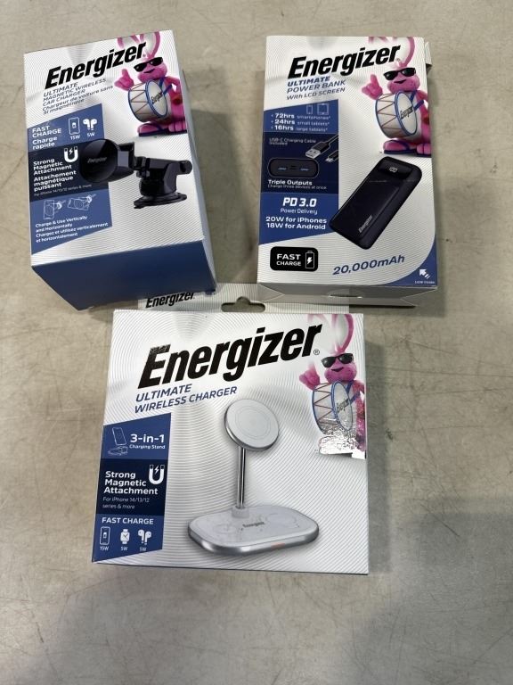 ENERGIZER 20K POWER BANK WITH LCD SCREEN, 3 IN 1 WIRELESS CHARGING STAND AND WIRELESS MAGNETIC CAR CHARGER