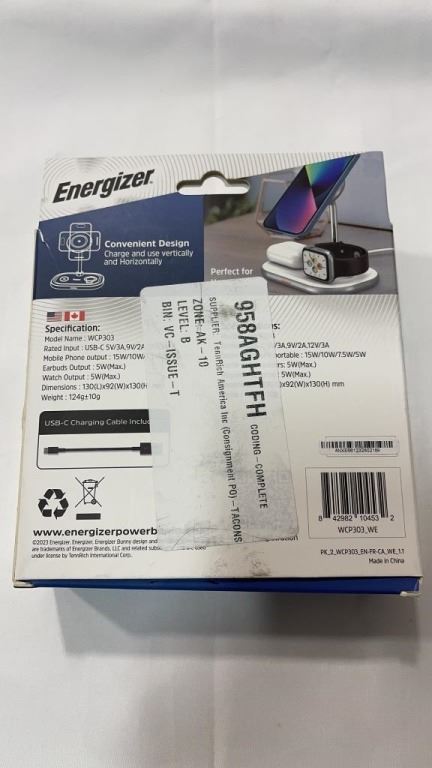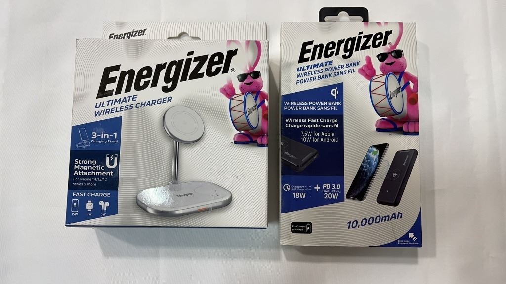 ENERGIZER 3-IN-1 MAGNETIC WIRELESS CHARGING STAND AND ENGERGIZER 10,000 MAH POWER BANK - TOTAL RETAIL $129