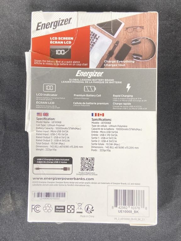 ENERGIZER MAX POWER BANK W/ LCD SCREEN AND ULTIMATE WIRELESS CAR CHARGER