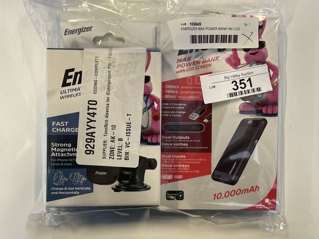 ENERGIZER MAX POWER BANK W/ LCD SCREEN AND ULTIMATE WIRELESS CAR CHARGER
