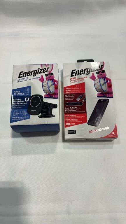 ENERGIZER MAX POWER BANK W/ LCD SCREEN AND ULTIMATE WIRELESS CAR CHARGER