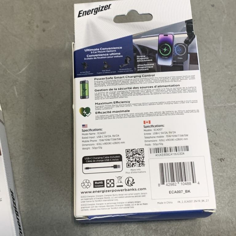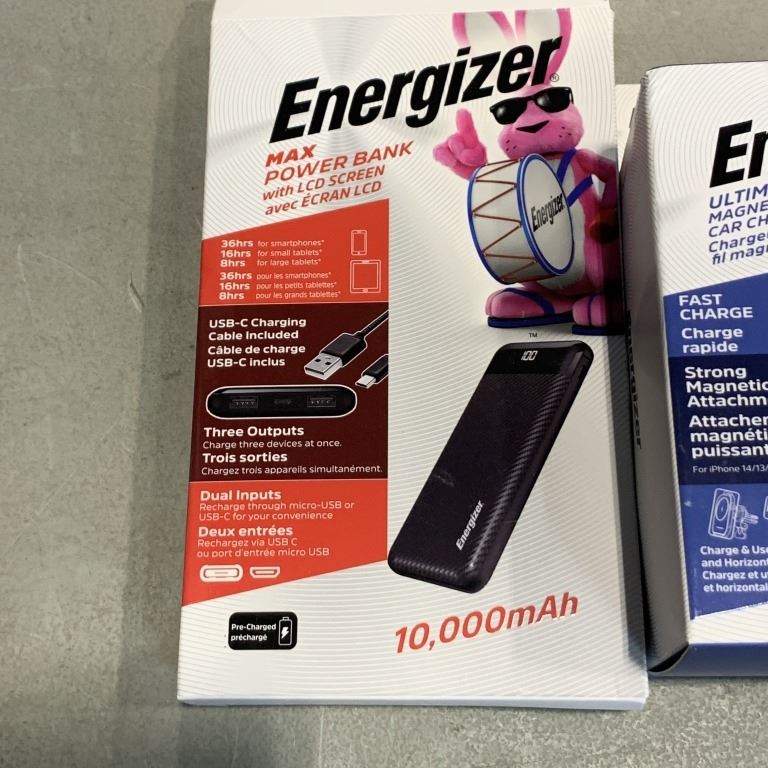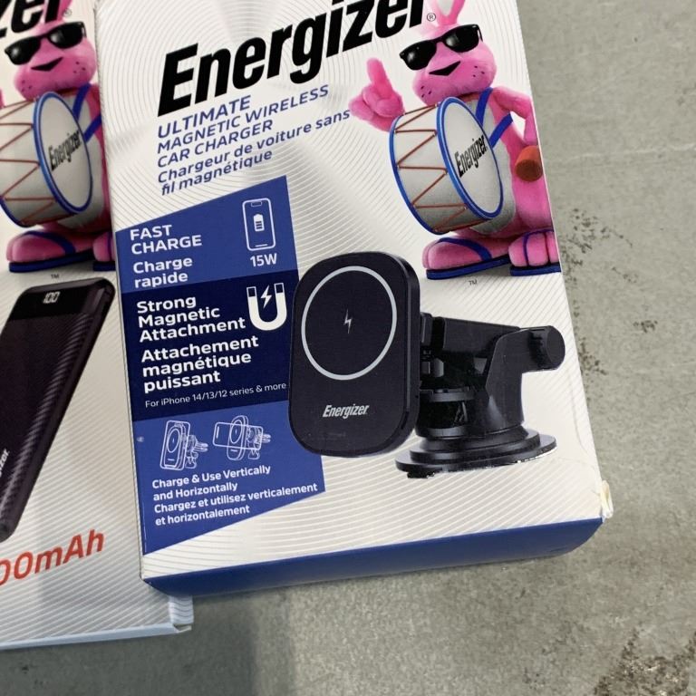 ENERGIZER MAX POWER BANK WITH LCD SCREEN 10,000MAH AND ENERGIZER ULTIMATE WIRELESS MAGNETIC CAR CHARGER