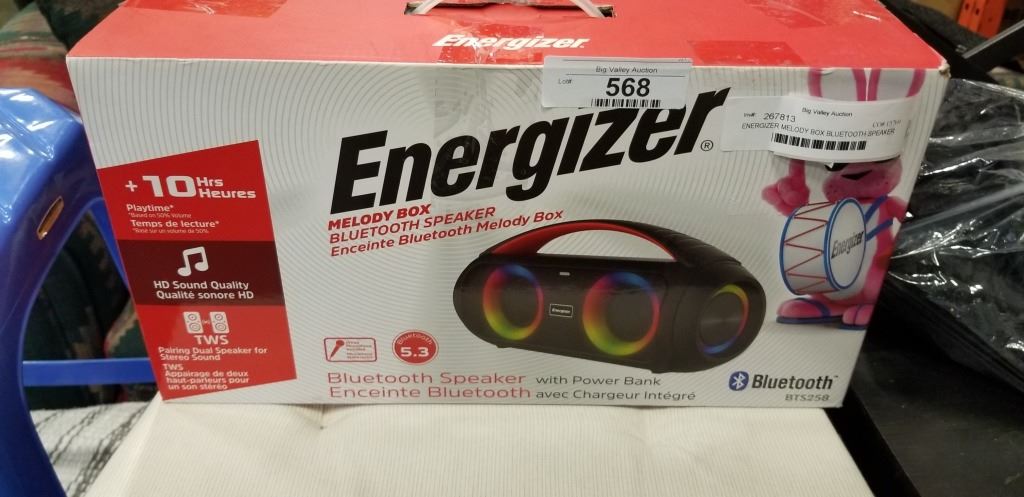 ENERGIZER MELODY BOX BLUETOOTH SPEAKER WITH POWERBANK - TESTED WORKING, RETAIL $99