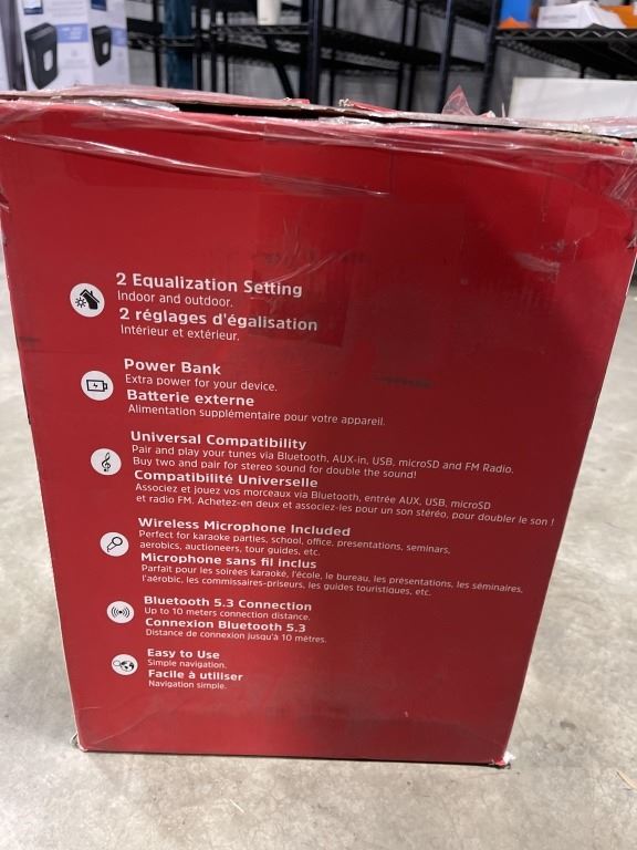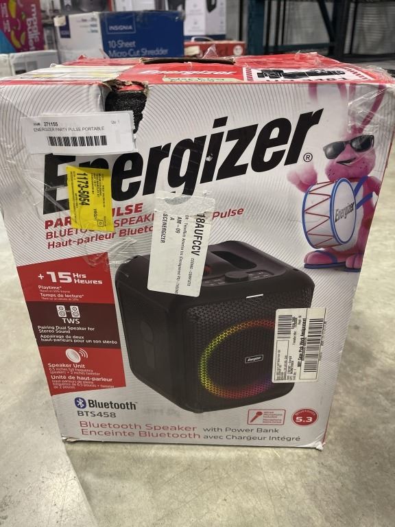 ENERGIZER PARTY PULSE PORTABLE BLUETOOTH SPEAKER W/ WIRELESS MIC, MISSING CHARGER - TESTED WORKING, RETAIL $129