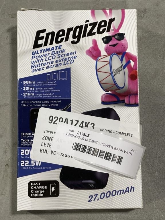 ENERGIZER ULTIMATE POWER BANK WITH LCD SCREEN, 27,000MAH