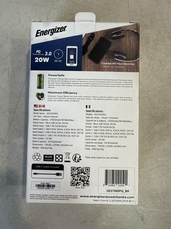 ENERGIZER ULTIMATE POWER BANK WITH LCD SCREEN, 27,000MAH