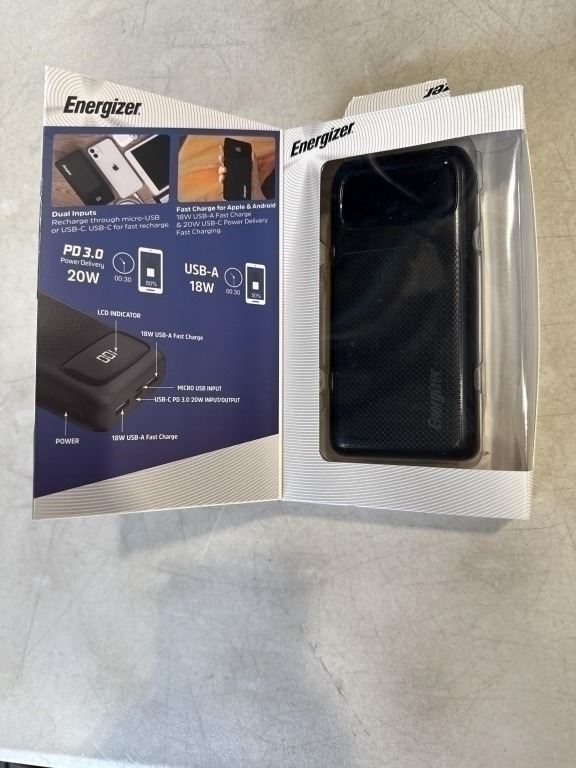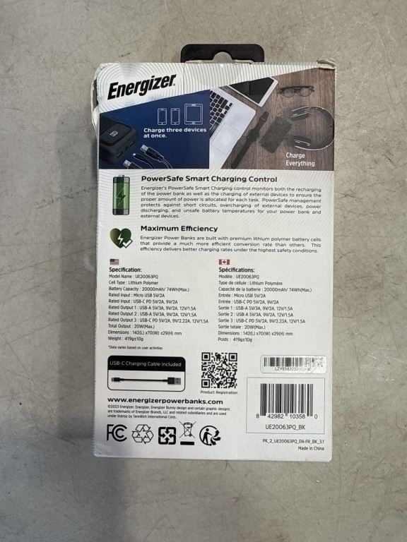 ENERGIZER ULTIMATE POWER BANK WITH LCD SCREEN AND TRIPLE OUTLETS, 20,000MAH