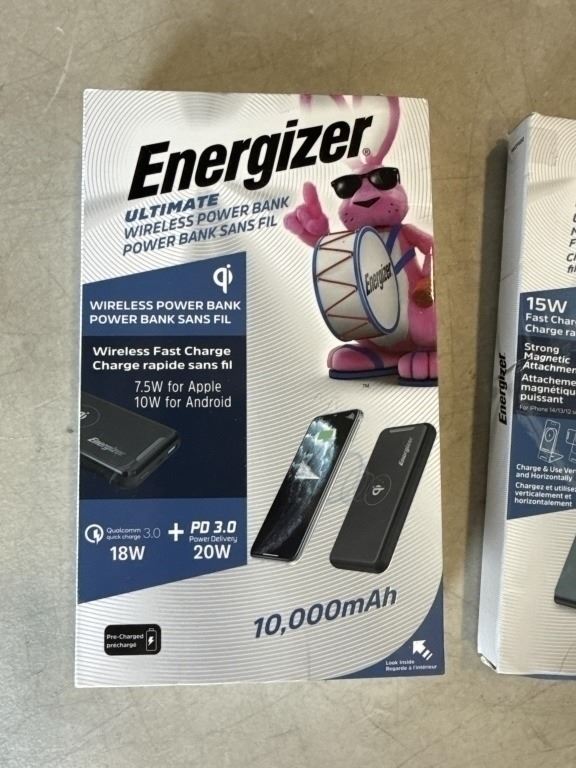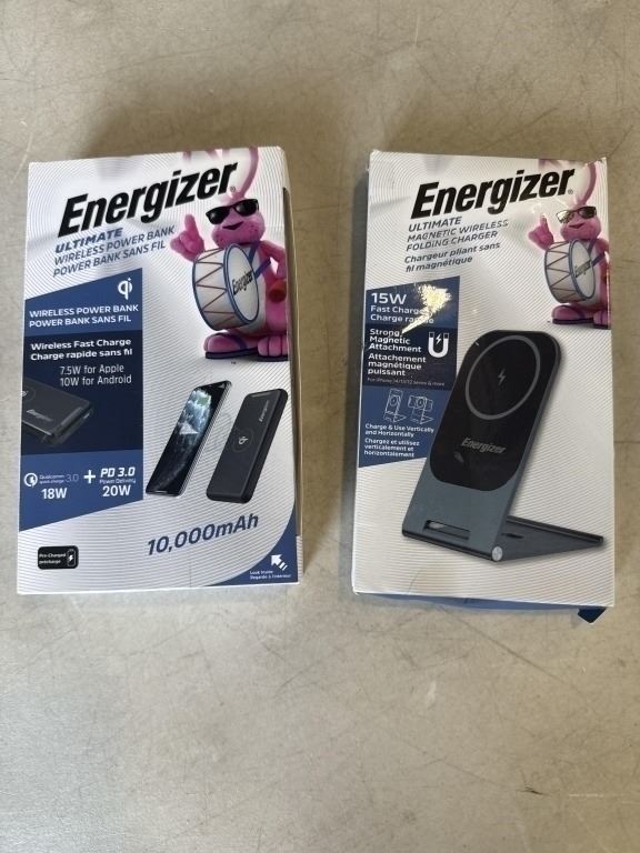 ENERGIZER ULTIMATE WIRELESS POWER BANK WITH WIRELESS QI FAST CHARGE, 10,000 MAH AND ENERGIZER ULTIMATE MAGNETIC WIRELESS FOLDING FAST CHARGE STAND