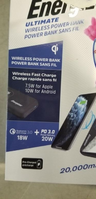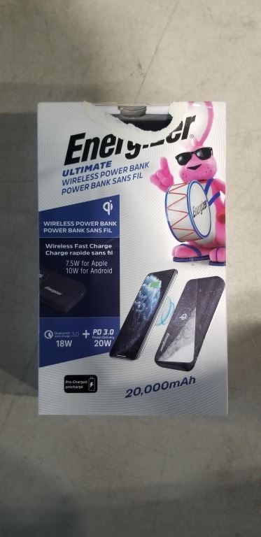 ENERGIZER ULTIMATE WIRLEESS POWER BANK, 20,000MAH