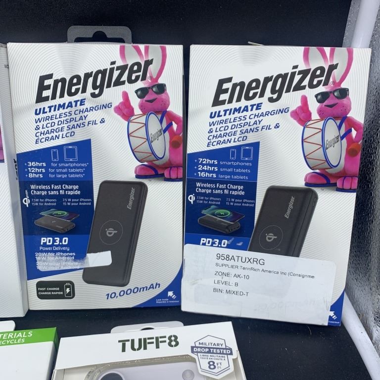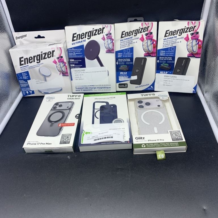 ENERGIZER WIRELESS CHARGER WITH ENERGIZER POWER BANK AND IPHONE CASES RETAIL $150