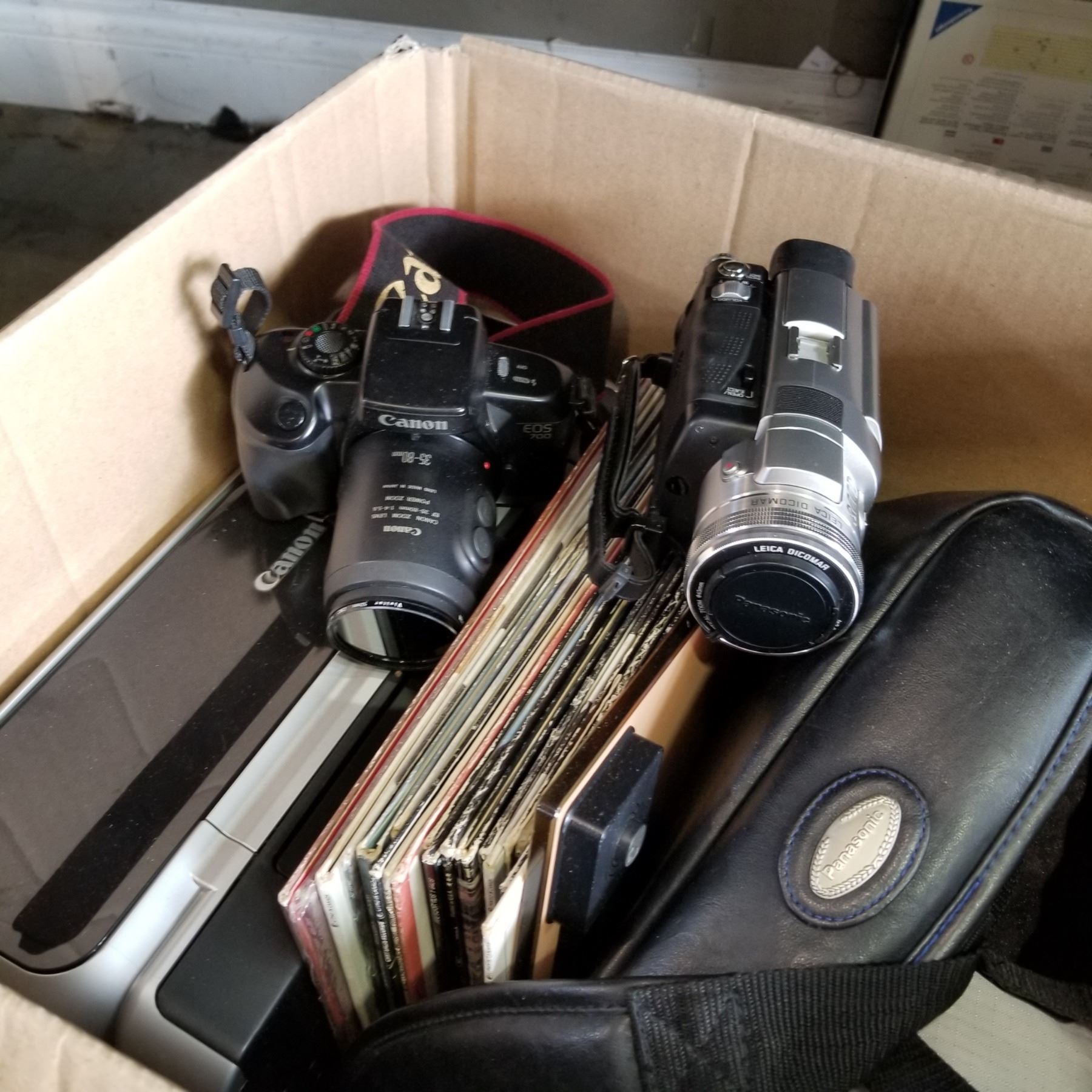 EOS 700 CANON CAMERA AND PANASONIC CAM CORDER, CANON PRINTER, AND RECORDS
