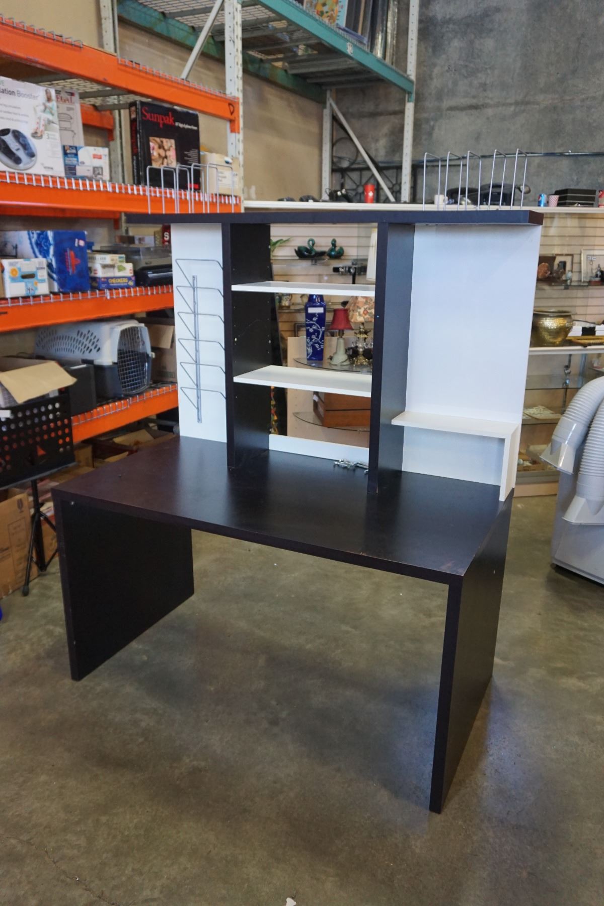ESPRESSO AND WHITE IKEA DESK W/ HUTCH