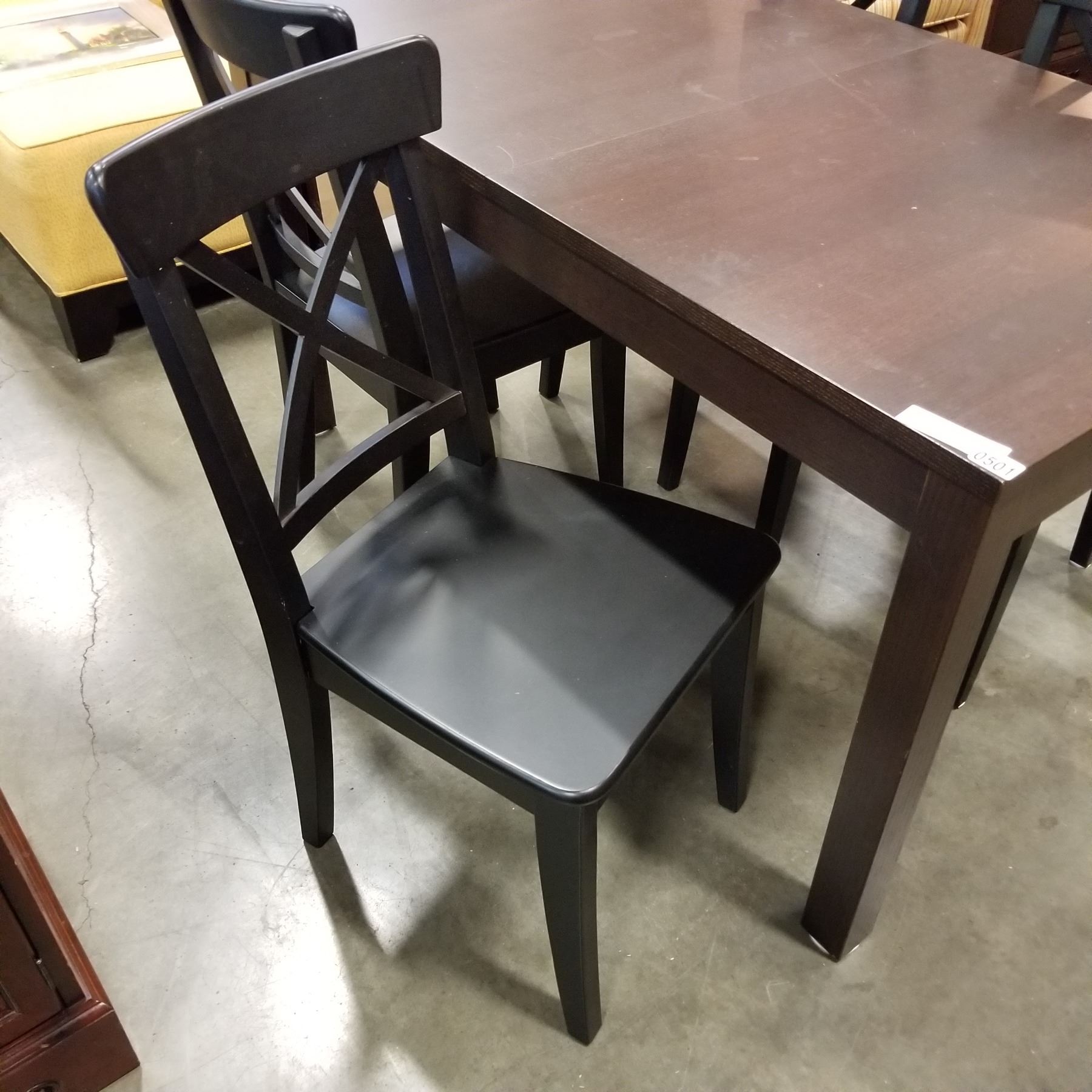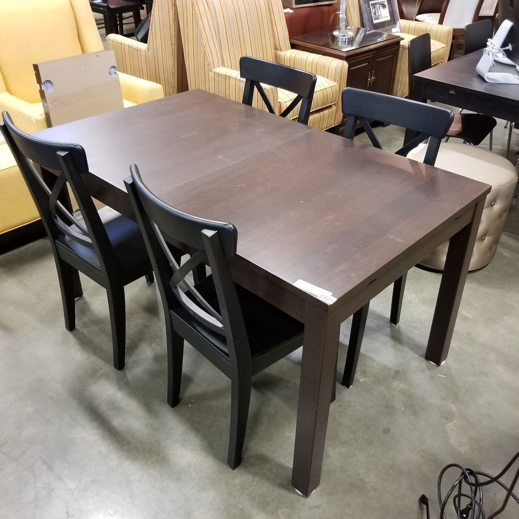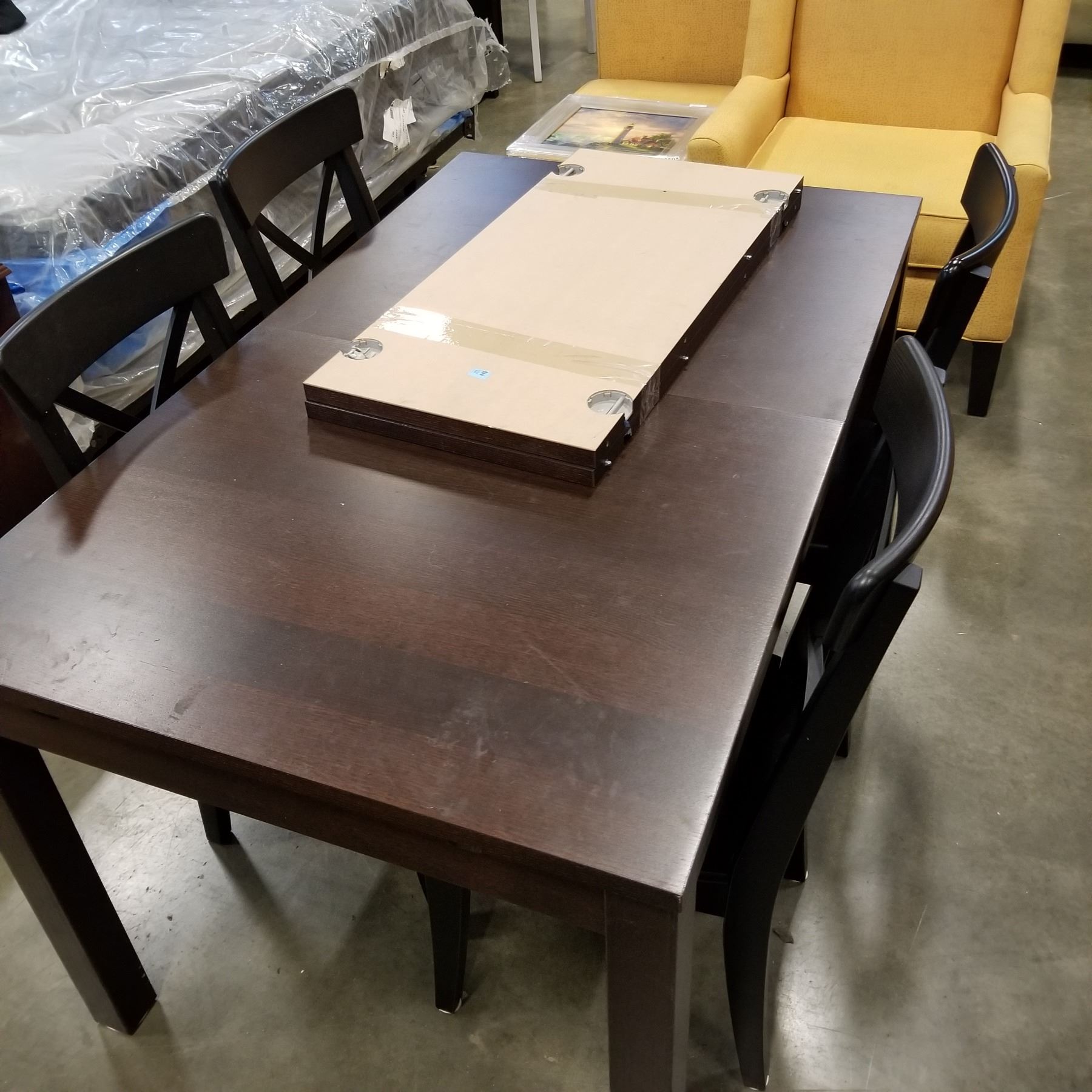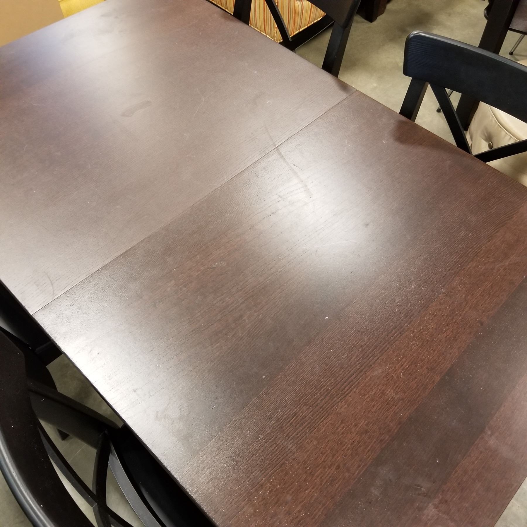 ESPRESSO FINISH DINING TABLE W/ 2 EXTENSIONS AND 4 CHAIRS