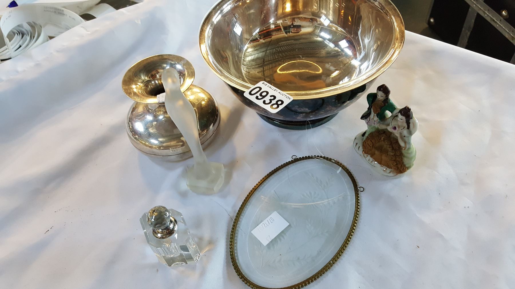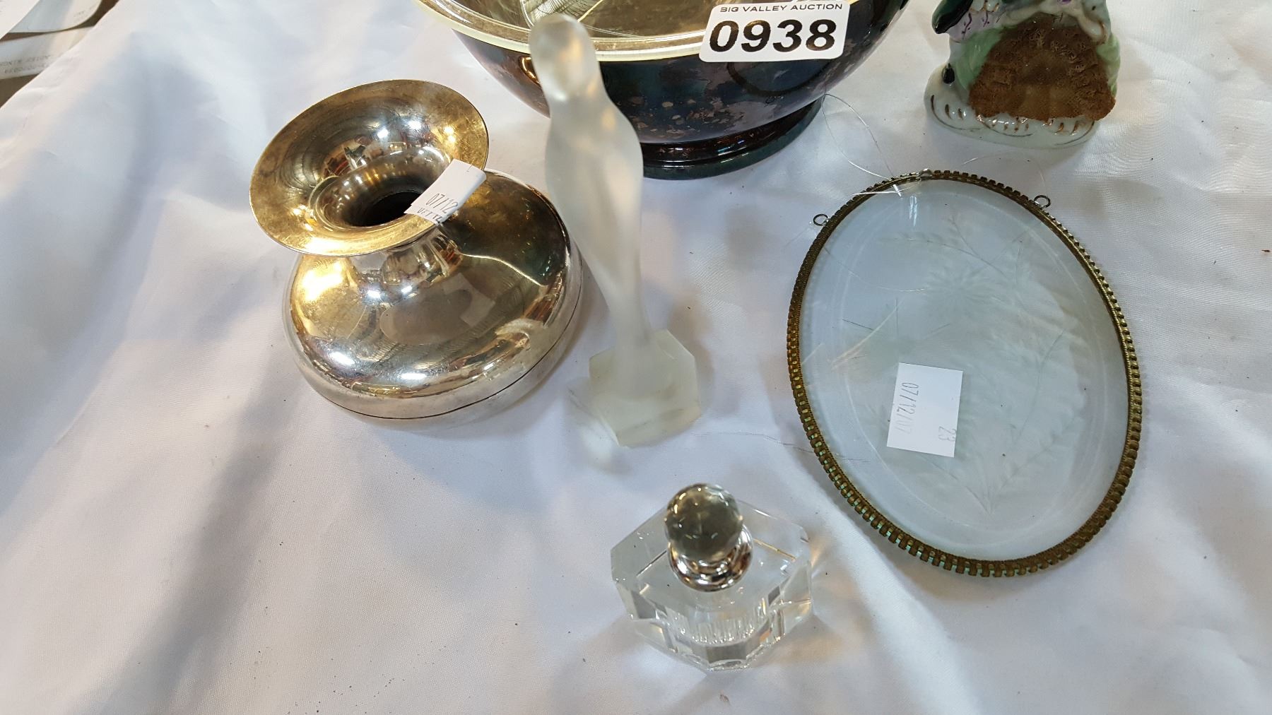 ETCHED GLASS SILVER PLATE AND FIGURES
