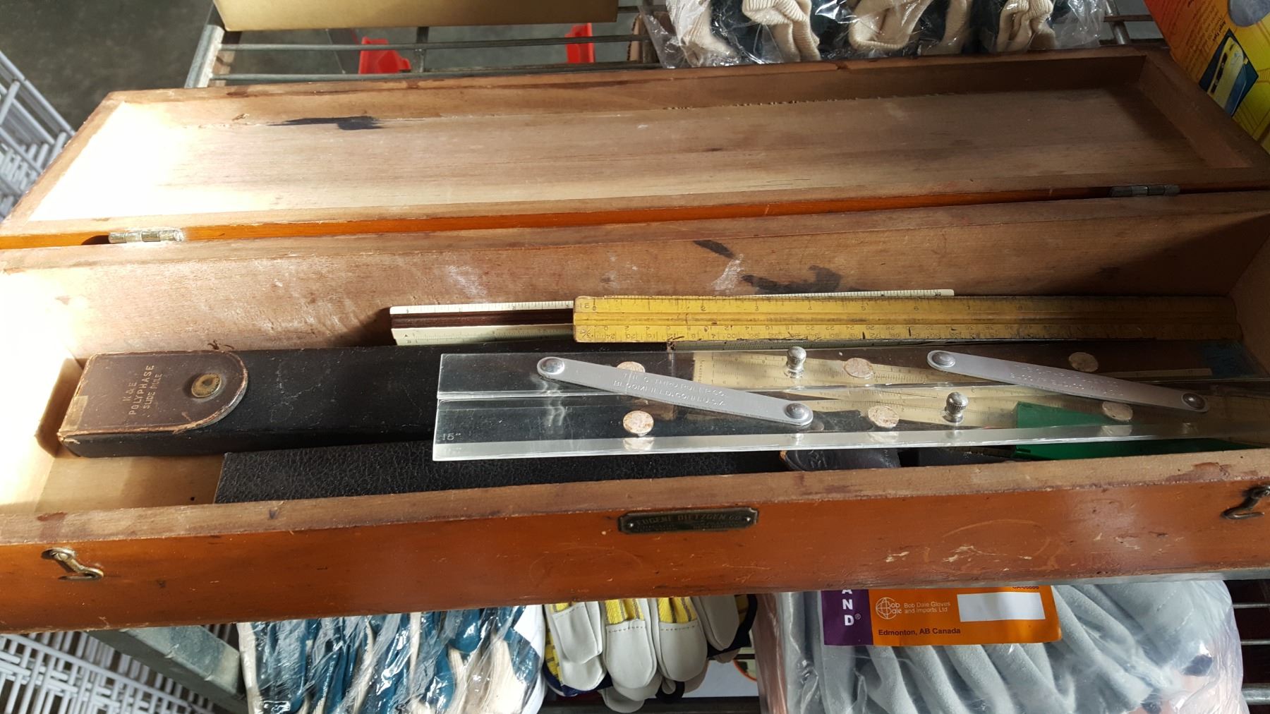 EUGENE DIETZGEN COMPANY VINTAGE RULERS AND CASES IN WOOD BOX