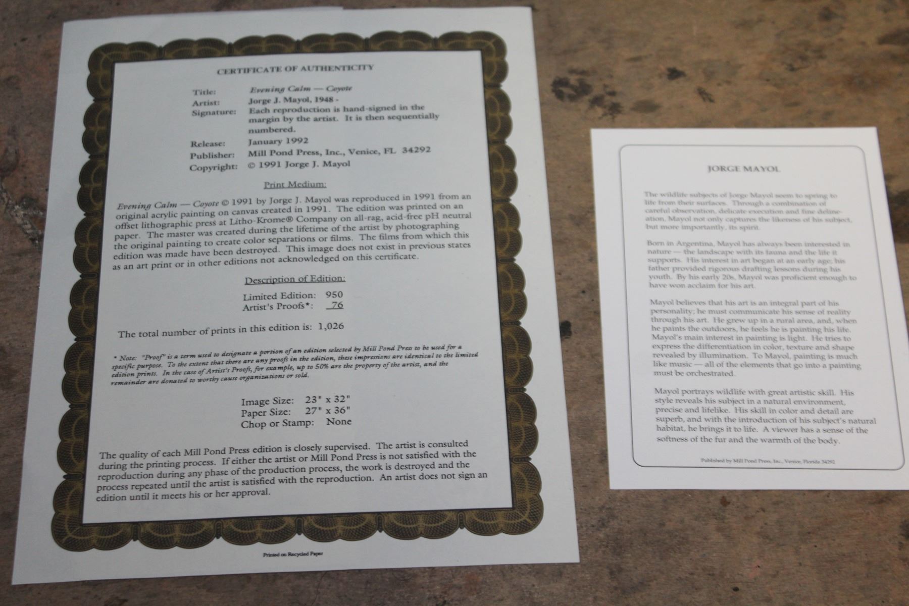 EVENING CALM COYOTE LEP BY JORGE J MAYOL 23667