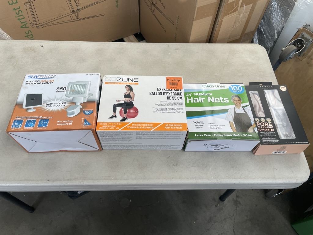 EXCERCISE BALL, PORE CLEANING SYSTEM AND HAIR NETS AND 80 LED SOLAR MOTION LIGHT