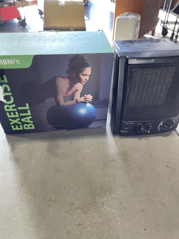 EXERCISE BALL AND DURACRAFT SPACE HEATER