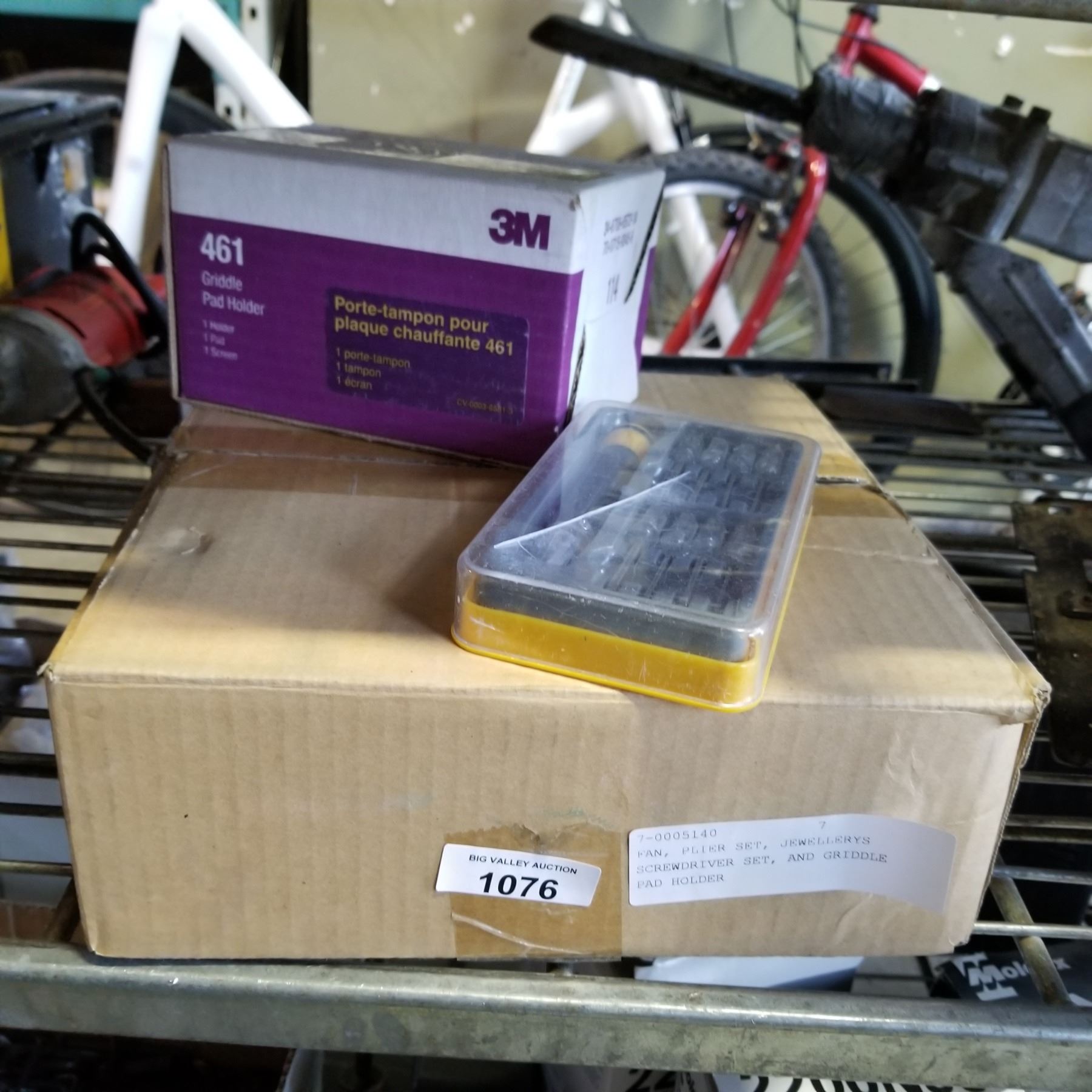 FAN, JEWELLERYS SCREWDRIVER SET, AND GRIDDLE PAD HOLDER
