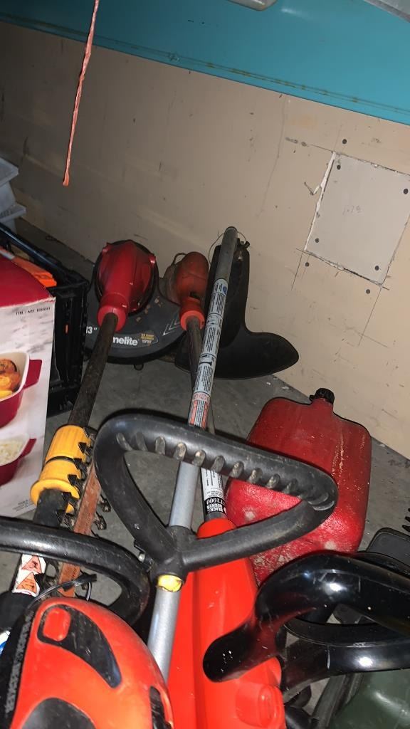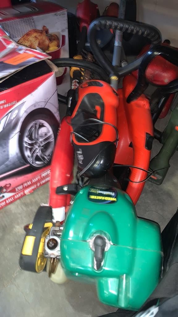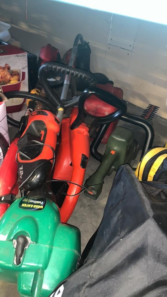 FEATHERLITE GAS WEEDEATER, ELECTRIC WEEDEATER AND 2 ELECTRIC HEDGE TRIMMERS