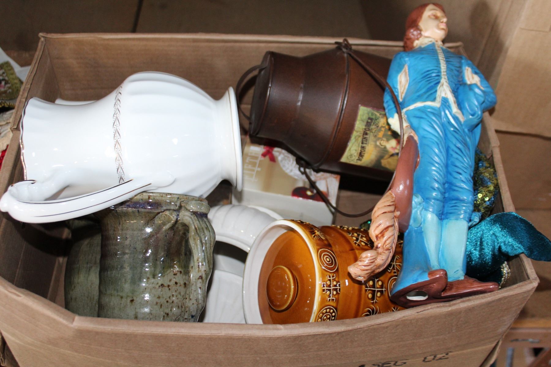 FIGURE AND CHINA AND TRAY OF ESTATE LINENS