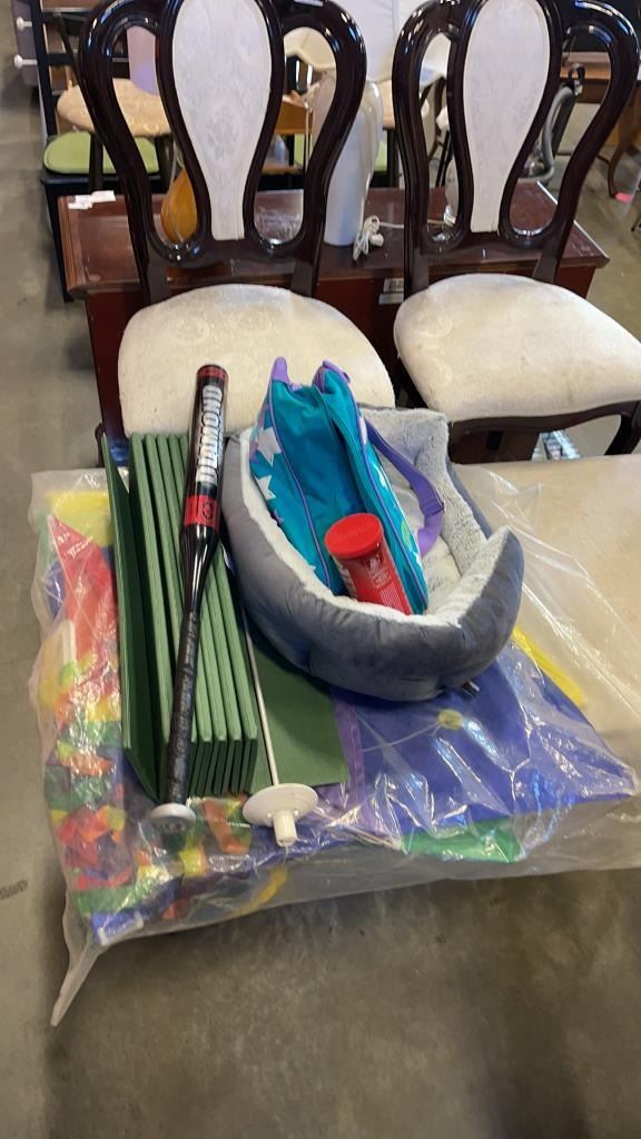FIGURE SKATES SIZE 8, DARTS, SOFTBALL BAT, KITE, SUN SHADE AND PET BED