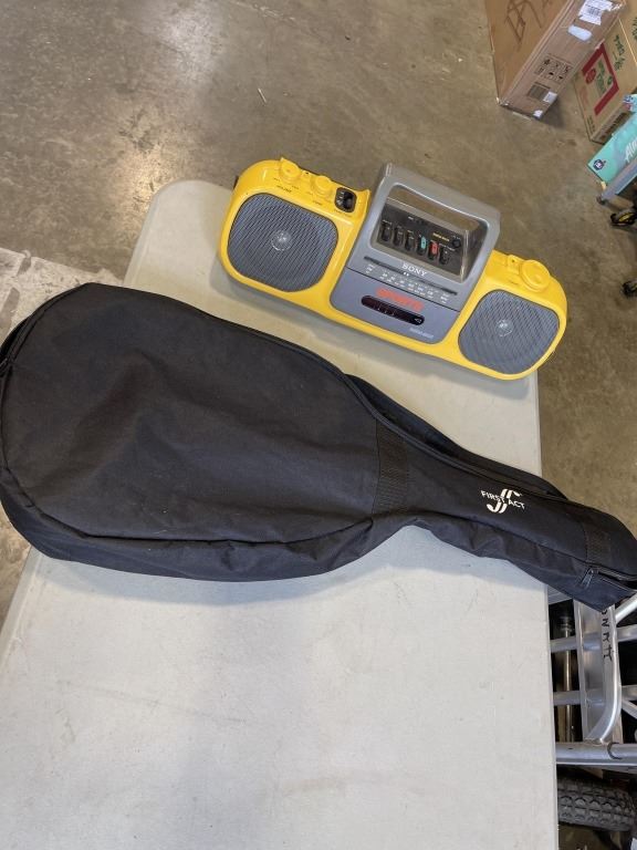 FIRST ACT ADAM LEVINE YOUTH GUITAR IN CARRY BAG AND VINTAGE SONY RADIO