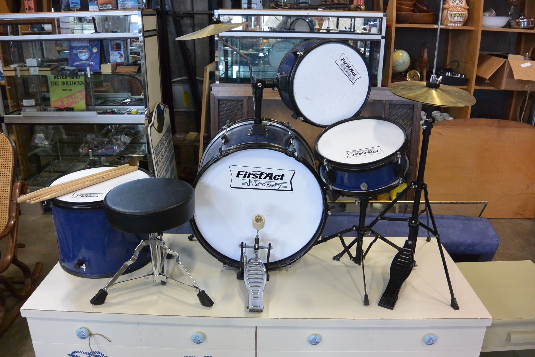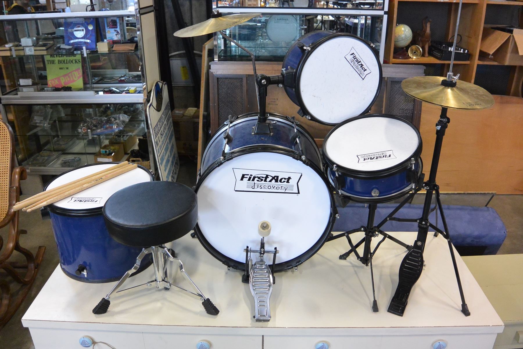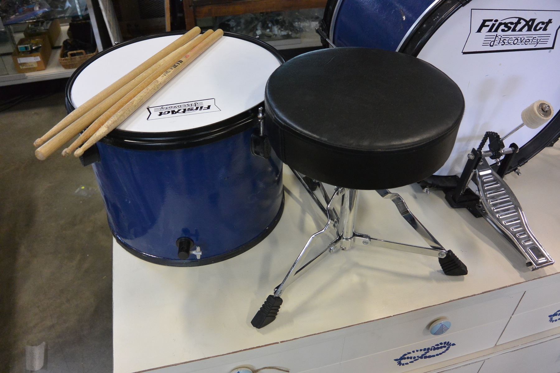 FIRST ACT KIDS DRUM SET WITH STOOL AND DRUMSTICKS