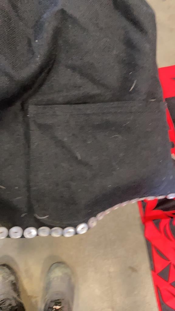 FIRST NATIONS BLANKET / TAPESTRY, SHOES AND SCARF AND HAND MADE BUTTON VEST