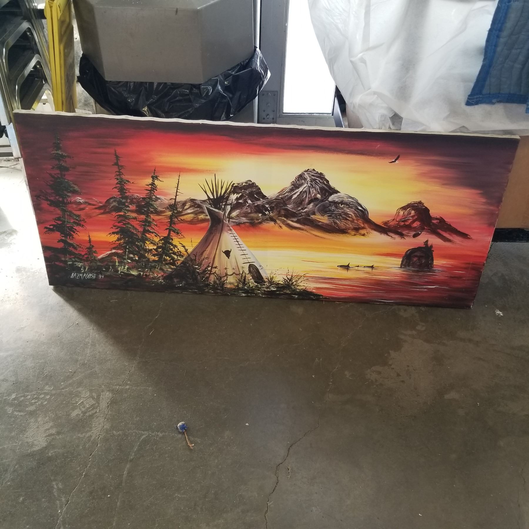 FIRST NATIONS PAINTING ON CANVAS SIGNED BAZMPOOSH 94
